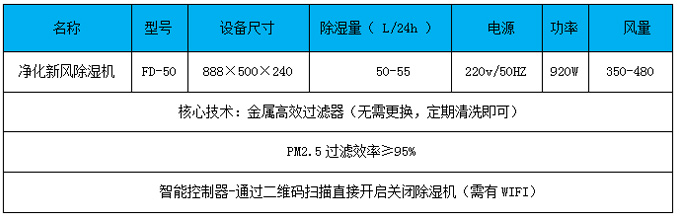 管道式新風(fēng)凈化除濕機(jī)技術(shù)參數(shù)